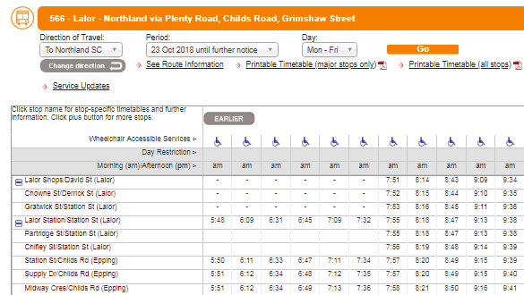 566 Route Schedules Stops Maps Bundoora Rmit Plenty Rd